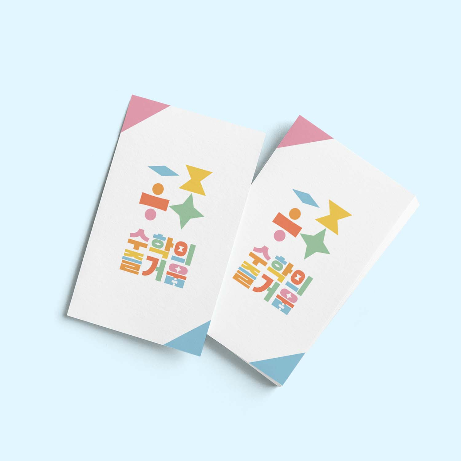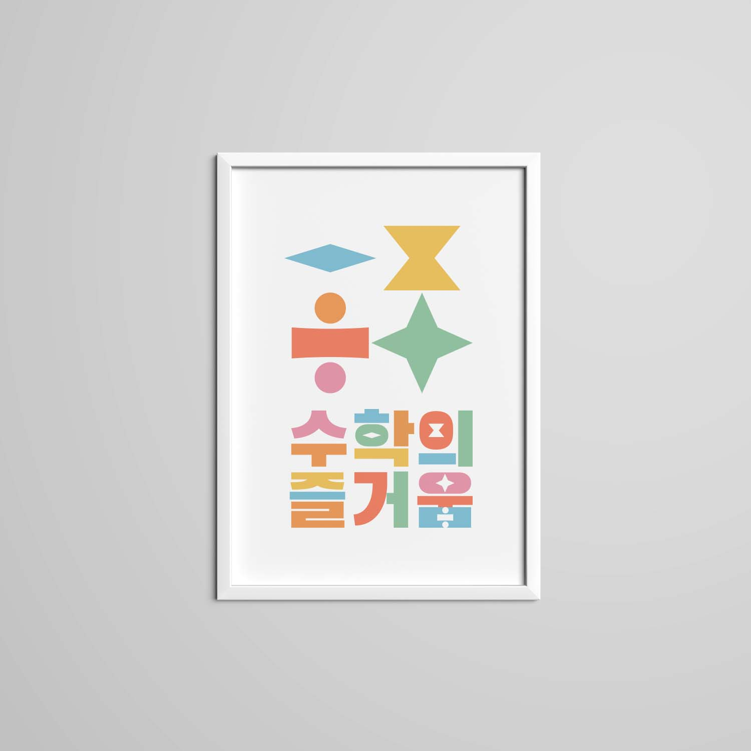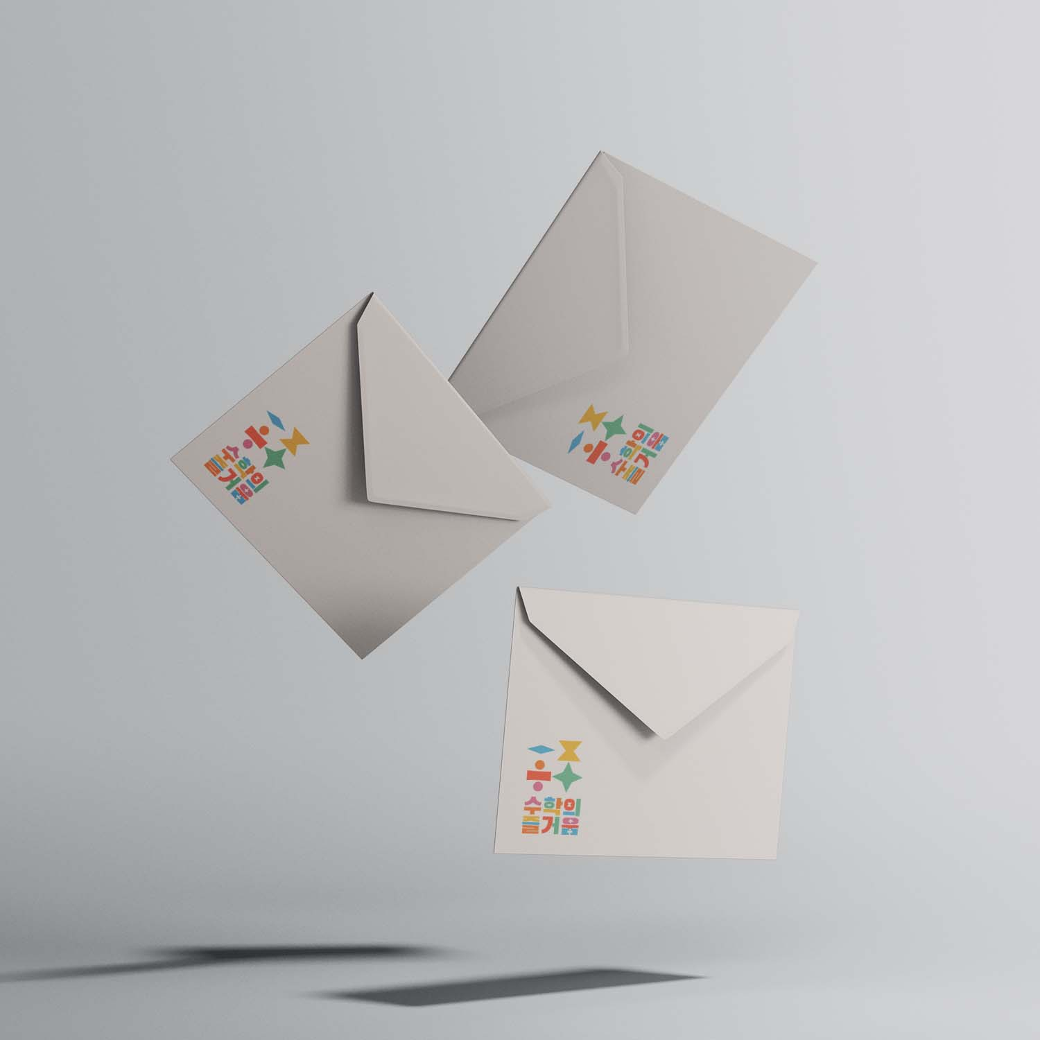'수학의 즐거움' 로고는 도형과 텍스트가 조화를 이뤄 도형의 정렬안에서도 다채로운 디자인을 통해 수학 공부로 찾을 수 있는 즐거움과 설렘을 전달합니다.